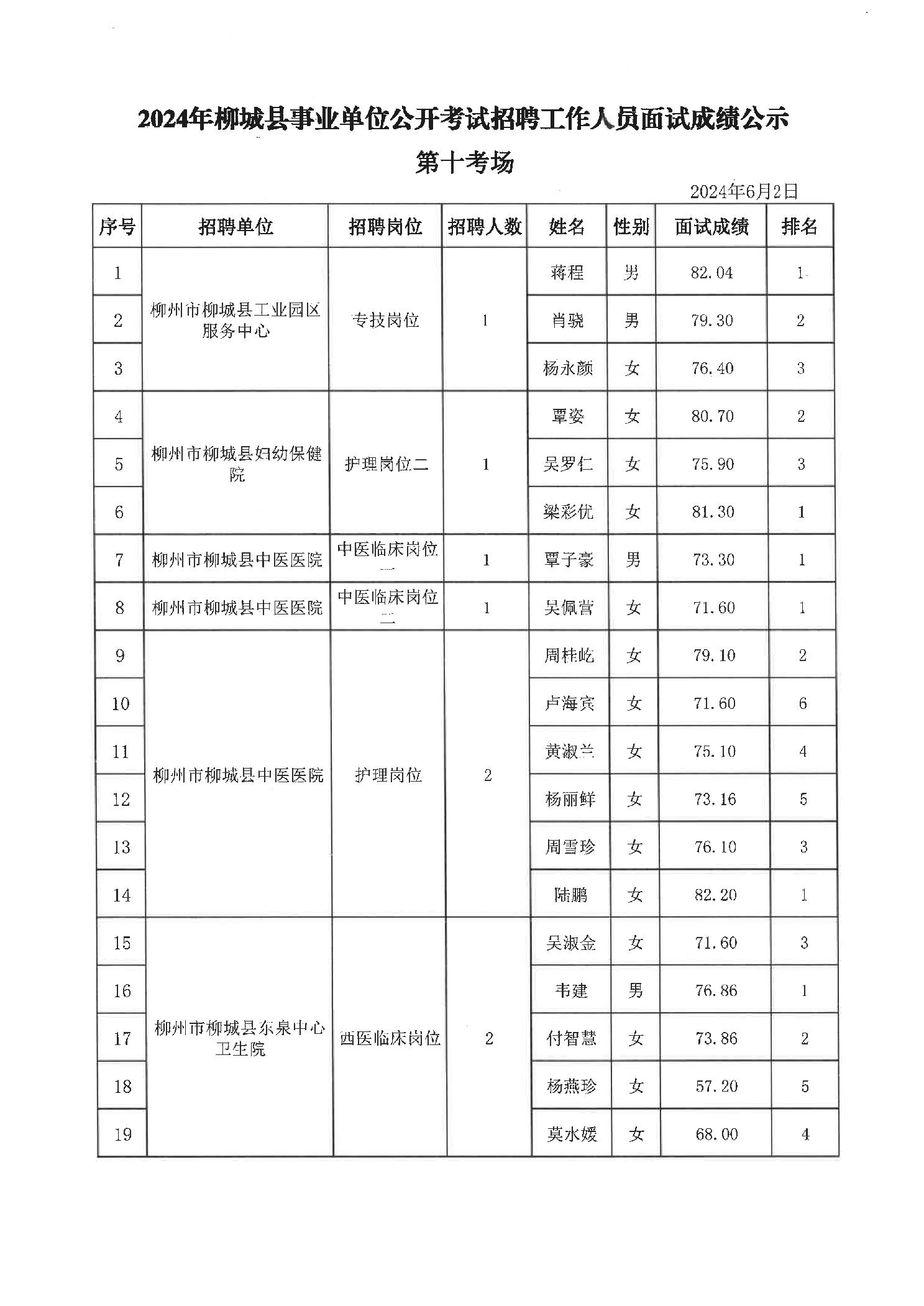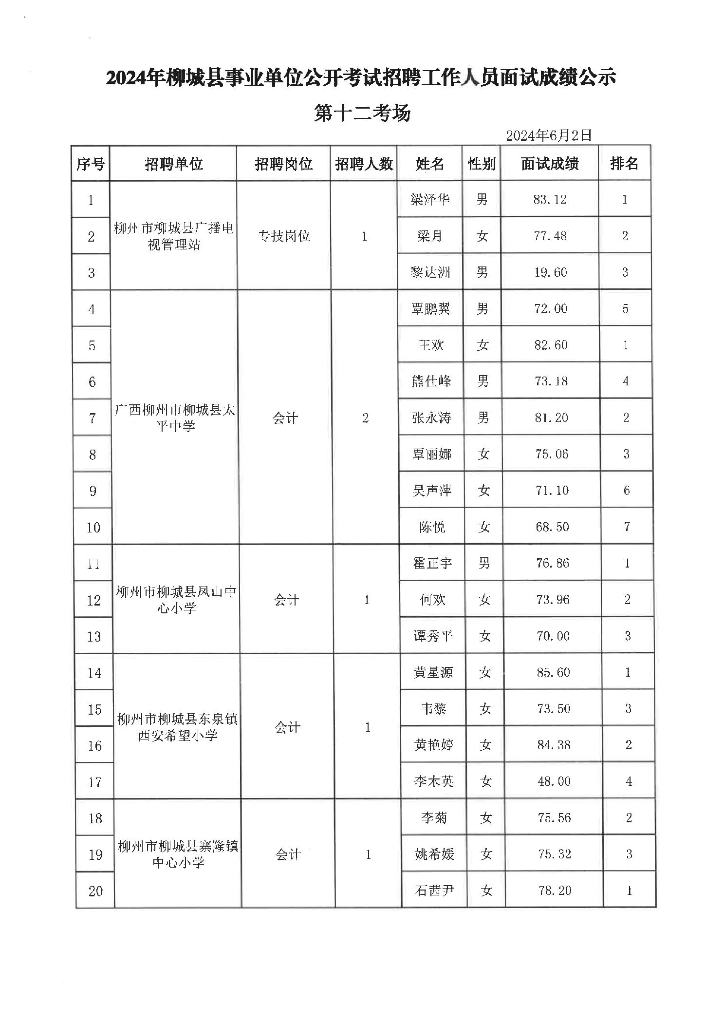 原文標(biāo)題:2024年柳州市事業(yè)單位公開(kāi)考試招聘工作人員面試成績(jī)公示(柳城縣崗位)