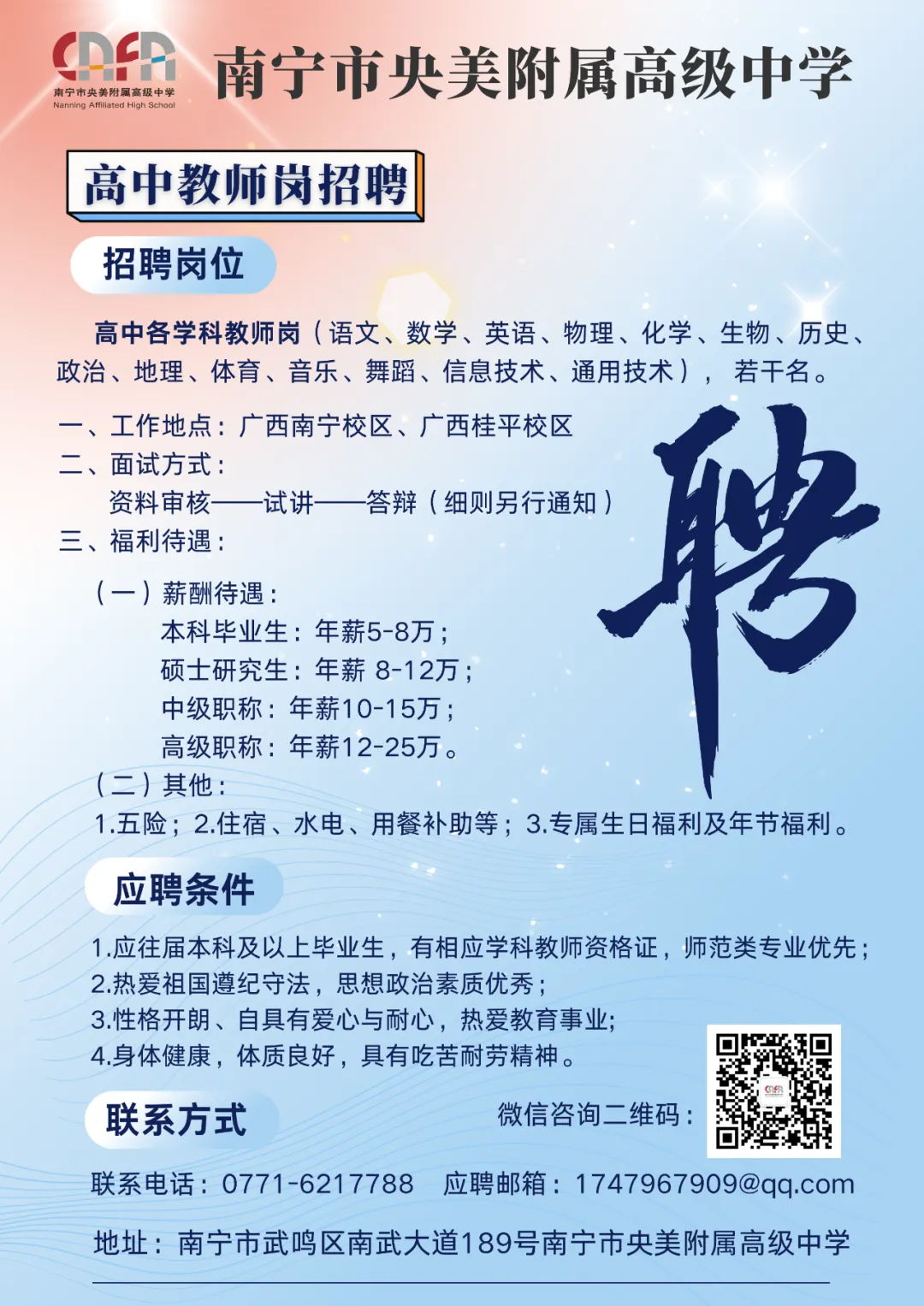 2025年南寧市央美附屬高級中學(xué)教師招聘公告