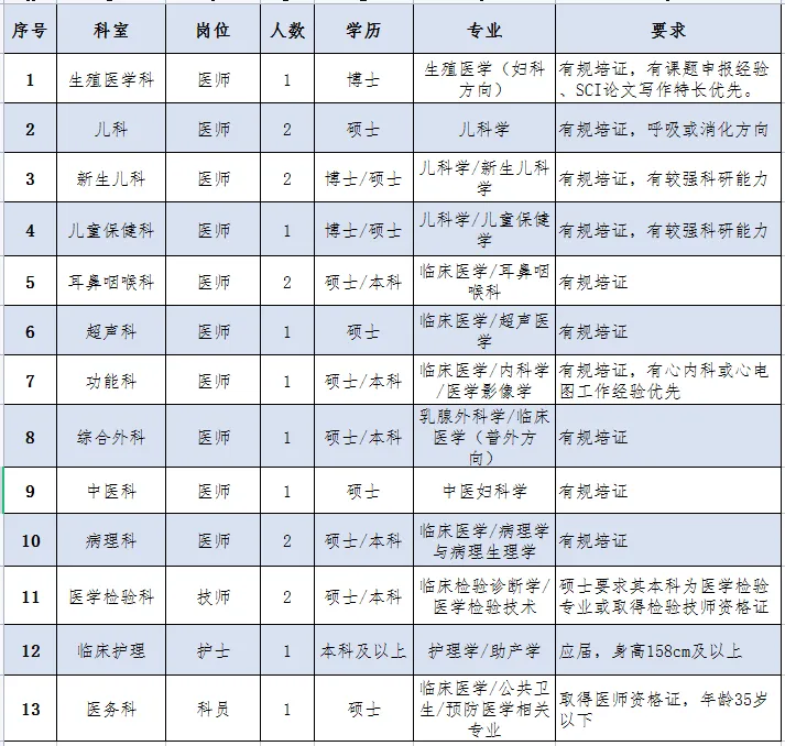 根據(jù)醫(yī)院整體發(fā)展規(guī)劃和學科建設(shè)需要,柳州市婦幼保健院面向社會公開招聘各學科相關(guān)專業(yè)技術(shù)人才,具體如下:
