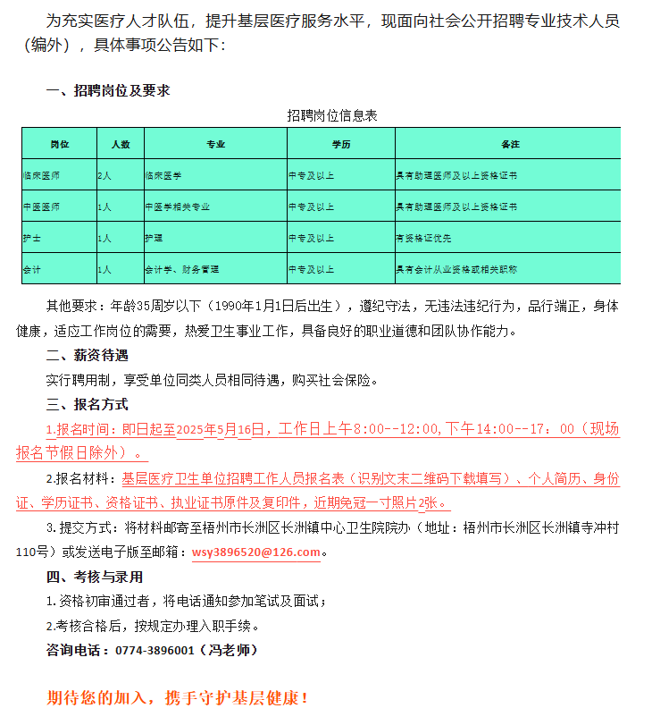 原文標(biāo)題:2025年梧州市長(zhǎng)洲區(qū)長(zhǎng)洲鎮(zhèn)中心衛(wèi)生院公開招聘公告