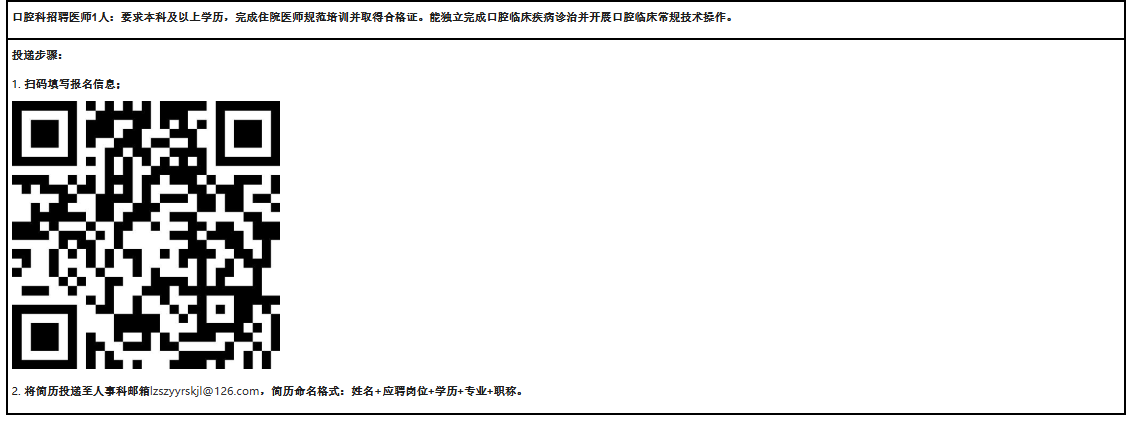 2025年廣西柳州口腔科醫(yī)師招聘1人