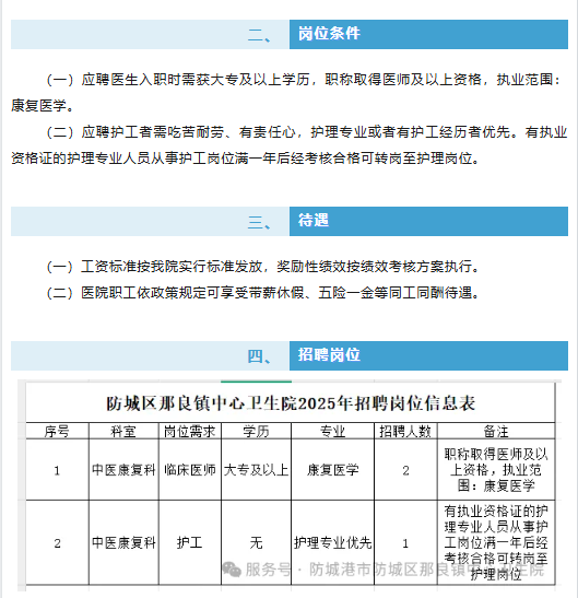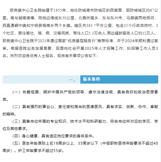 原文標題:招醫(yī)生、護工啦!防城區(qū)那良鎮(zhèn)中心衛(wèi)生院“職”等你來