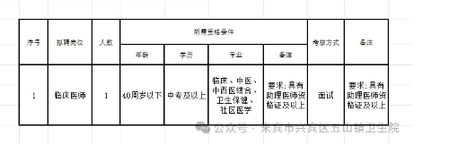 原文標(biāo)題:來(lái)賓市興賓區(qū)五山鎮(zhèn)衛(wèi)生院公開招聘編制外聘用人員公告