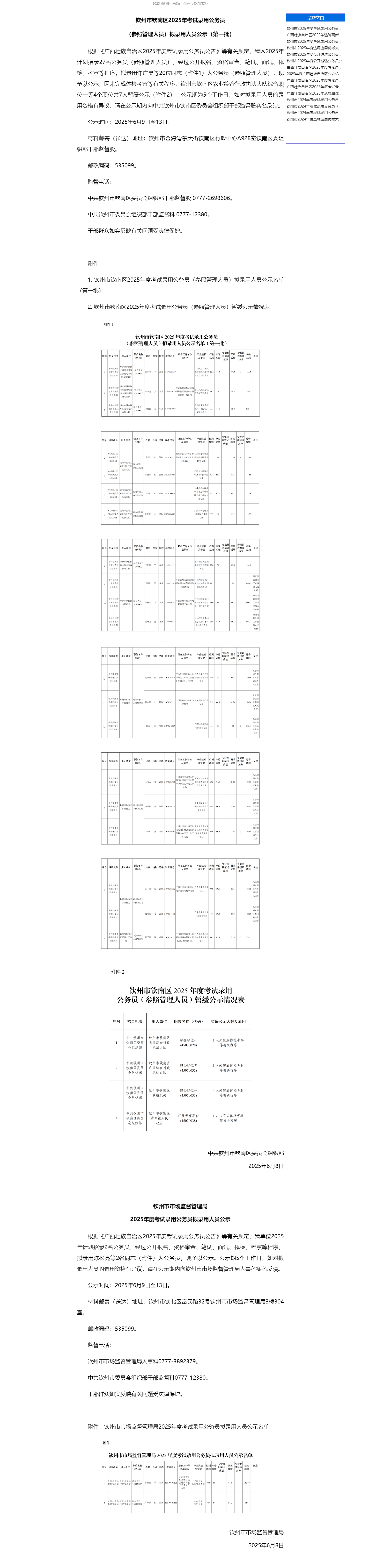 欽州市2025年度考試錄用公務員擬錄用人員公示(二)