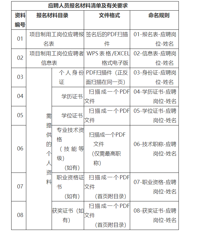 應(yīng)聘人員按照《應(yīng)聘人員報(bào)名材料清單及有關(guān)要求》提供相應(yīng)報(bào)名材料,壓縮成一個(gè)文件(文件名和郵件主題統(tǒng)一以本人姓名進(jìn)行命名),發(fā)送至電子郵箱:515827308@qq.com。本次招聘僅接受電子郵件方式報(bào)名,報(bào)名材料一經(jīng)提交不能修改。