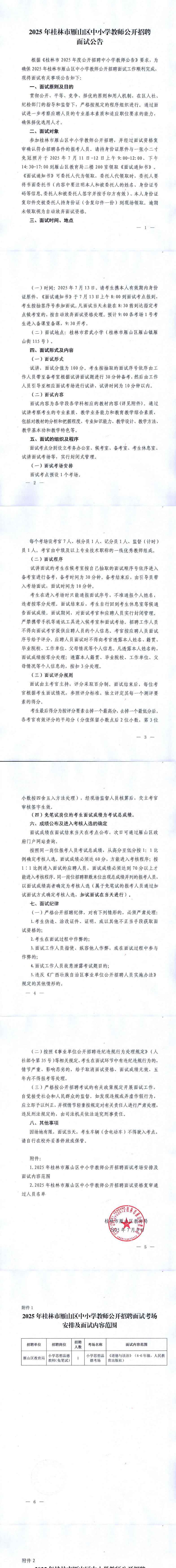 原文標題:2025年桂林市雁山區(qū)中小學(xué)教師公開招聘面試公告