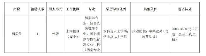 根據(jù)學(xué)校工作需要,南寧市第十中學(xué)上津校區(qū)(高中部)面向社會招聘教職工,具體崗位如下: