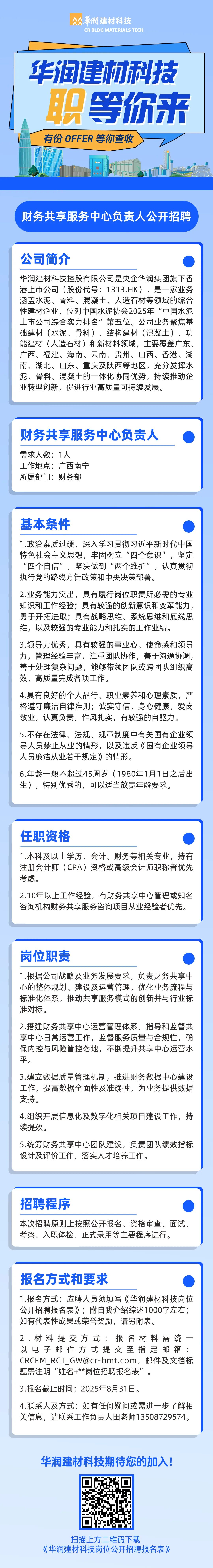 2025年華潤(rùn)建材科技財(cái)務(wù)共享服務(wù)中心負(fù)責(zé)人公開招聘公告