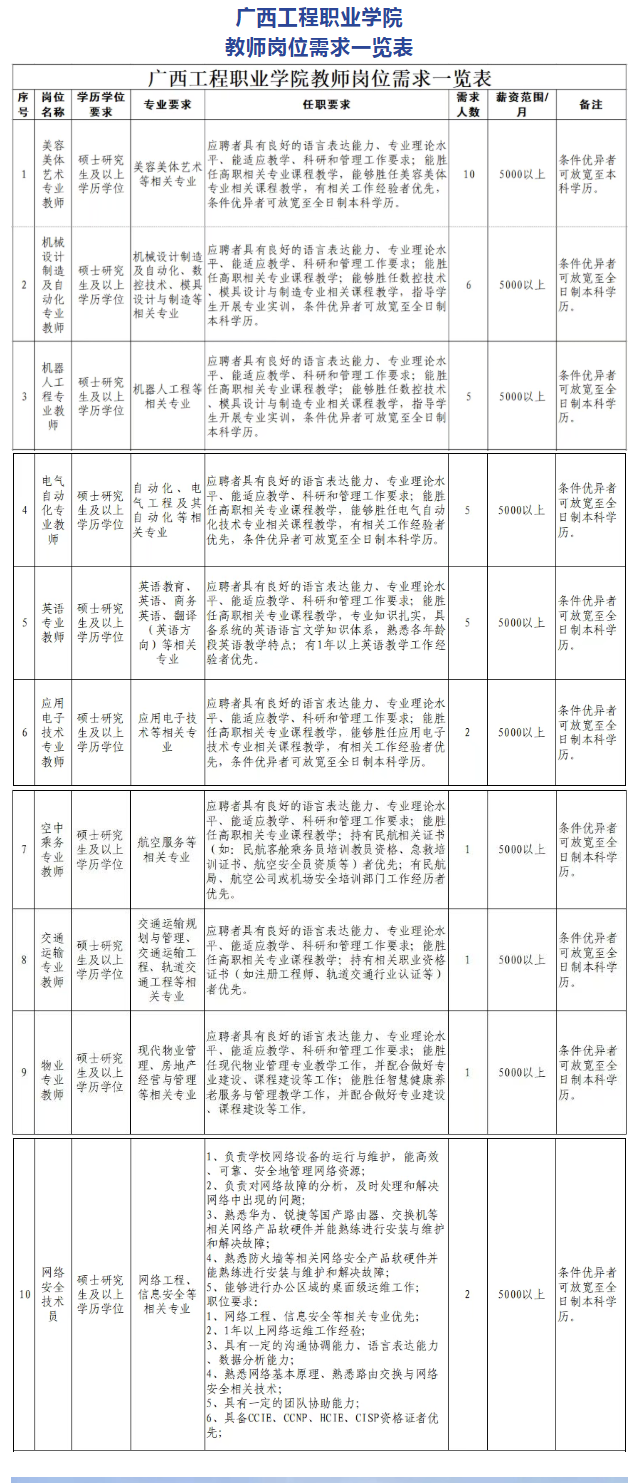原文標(biāo)題:急聘!招賢納士 共筑未來 | 廣西工程職業(yè)學(xué)院2025年人才招聘