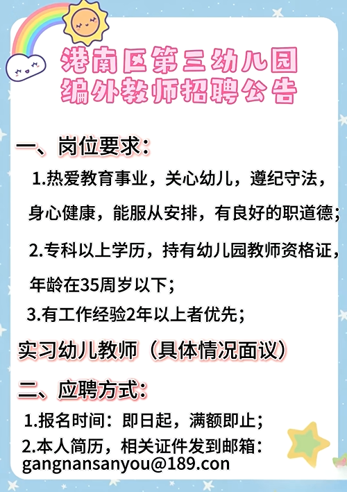 2026年貴港港南區(qū)第三幼兒園編外教師招聘公告