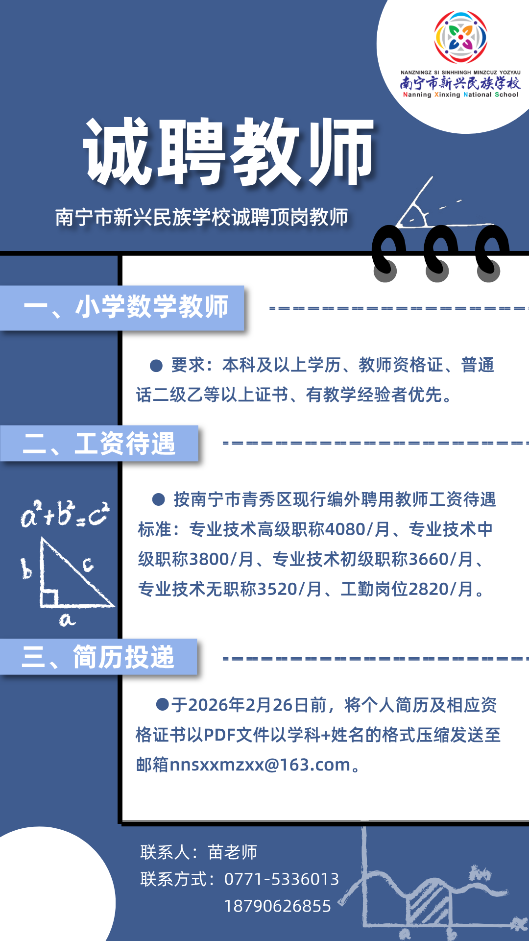 原文標(biāo)題:2026年南寧市新興民族學(xué)校誠聘教師